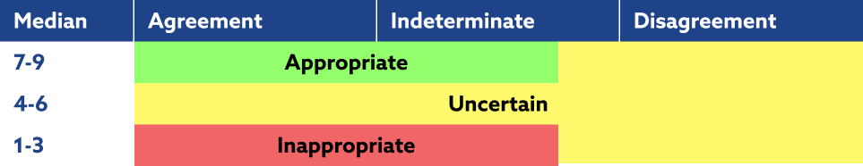 - Disagreement: at least 1/3 of the panellists rated in each extreme segment